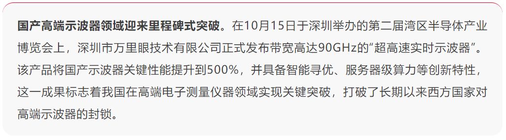 高端示波器是半导体、通信等产业的基础工具,科技进步高度依赖于关键测试测量技术的突破,没有测量就没有科学。此前,中国市场长期受西方出口管制制约,带宽60GHz以上的实时示波器被禁止进入中国,部分单位甚至无法获取20GHz以上设备。万里眼公司CEO刘桑表示,万里眼始终秉持“智测世界,洞见未来,助力科技与产业持续进步”的愿景和使命,聚焦电子基础测量仪器、射频微波测量仪器及网络测试仪器三大产品线,致力于突破关键技术,研发高端产品,提供创新测试解决方案。