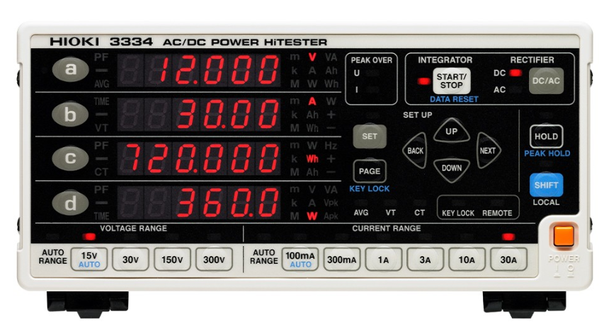 可测量待机功率,最大30A输入的功率计 ,满足您节能方面的需求 符合 SPECpower(R) 标准 DC或单相2线 Max. input 300 V, 30 A 测试源频率 DC, 45 ~ 5kHz 基本精度 ±0.2% 直接输入