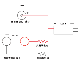 当负载消耗较大电流的时候,就会在电源到负载端子的连接线上产生压降,远端感应可以自动补偿负载线的压降。远端感应功能电源量测的接线示意图如下: