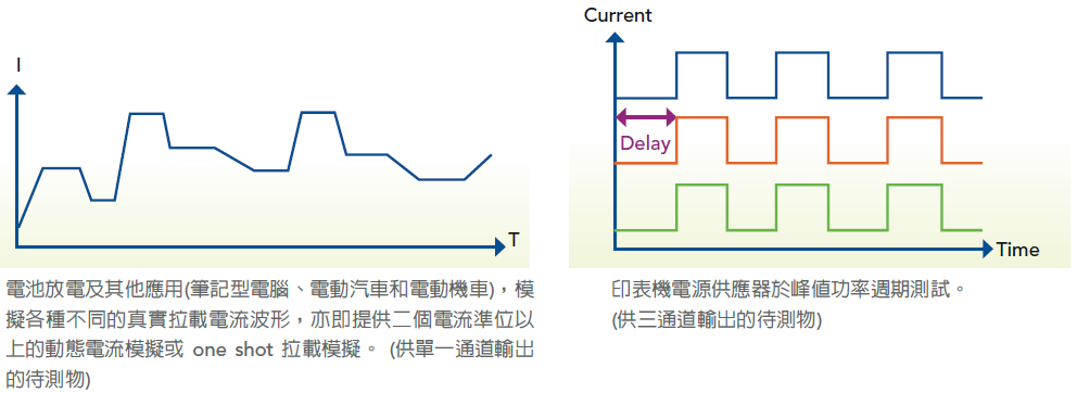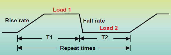 63600系列内建100组可编程负载时序,可供使用者模拟各种不同的真实拉载状况,此外,每一模块都可独立操作或同步操作,因此每个模块可独立执行各自时序,并一起同步开始拉载。以下举例说明一般常见的编程时序应用。