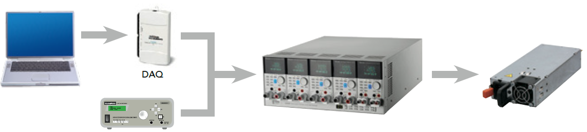 • 除一般的定电流、定电压、定功率、定电阻拉载模式外,在拉载任意波形时,一般传统的方式是透过计算机将预先储存的波形透过DAQ卡或者单纯的透过任意波形产生器将波形送给电子负载进行拉载,进而达到拉载任意波形的目的,如下图所示。