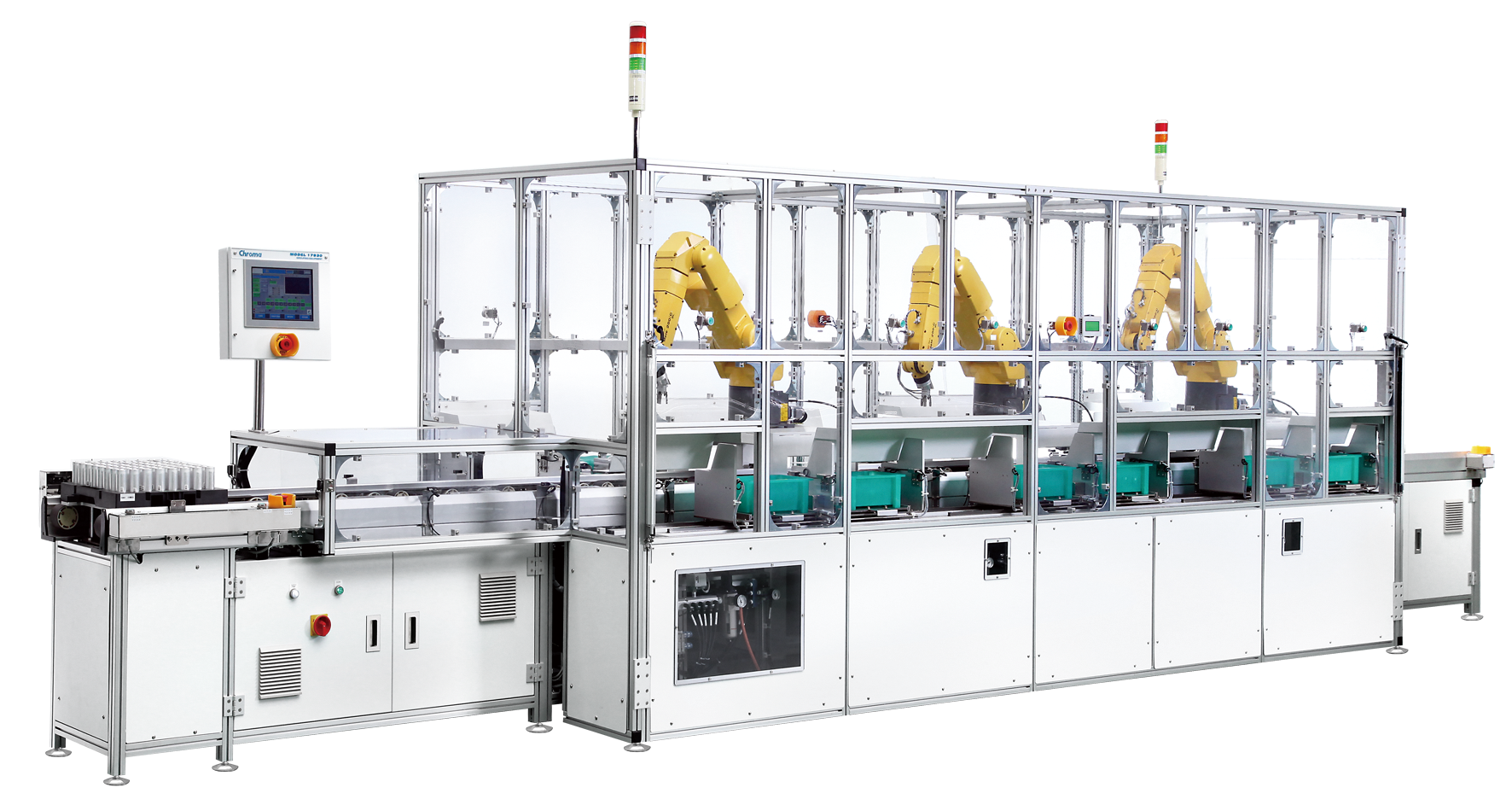 在活化制程前后会有仓储静置的程序,依据工艺差别分为常温仓储与高温仓储,因为静置时间长而仓储数量庞大,通常会以系统取代人员管理,有场地利用率高、避免人为错误、减少制程差异、管制纪录详实与大幅提高效率的优点,Chroma提供高速安静的无人搬运车和专业的自动化仓储管理系统。