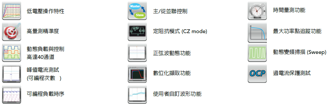 63600系列提供三种负载操作范围,内建16位的高精密A/D转换器,可达电压0.025%+0.01%F.S.、电流0.05%+0.05%F.S.与功率0.1%+0.1%F.S.的量测精准度。高精度的量测对于测量待测物的效率和其他重要参数是不可或缺的功能,同时此量测精准度亦能符合能源之星(ENERGY STAR®)与80 Plus的需求。