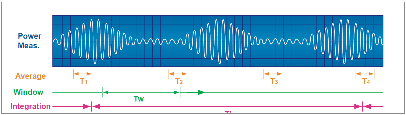 当使用传统的功率表量测待测物时,有时候会有功率数值一直跳动,无法读取的状况发生。这是因为待测物的功率消耗变动,或是非线性的运作模式(例如:BURST Modes),拉载电流在每次量测撷取时段不一样时,就得到不一样的数值,如下图的T1~T4。若用简单的平均运算法,只能得到一个视觉上的稳定值,还是有其他没撷取到的状况遗漏了,所以并非是适当的方法。