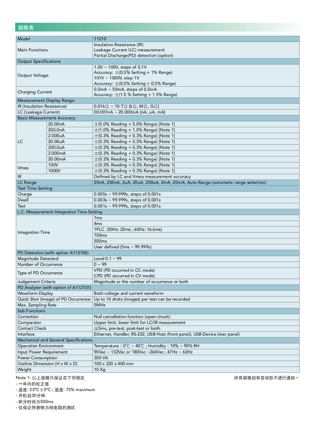 名  称:电池芯绝缘测试器MODEL 11210