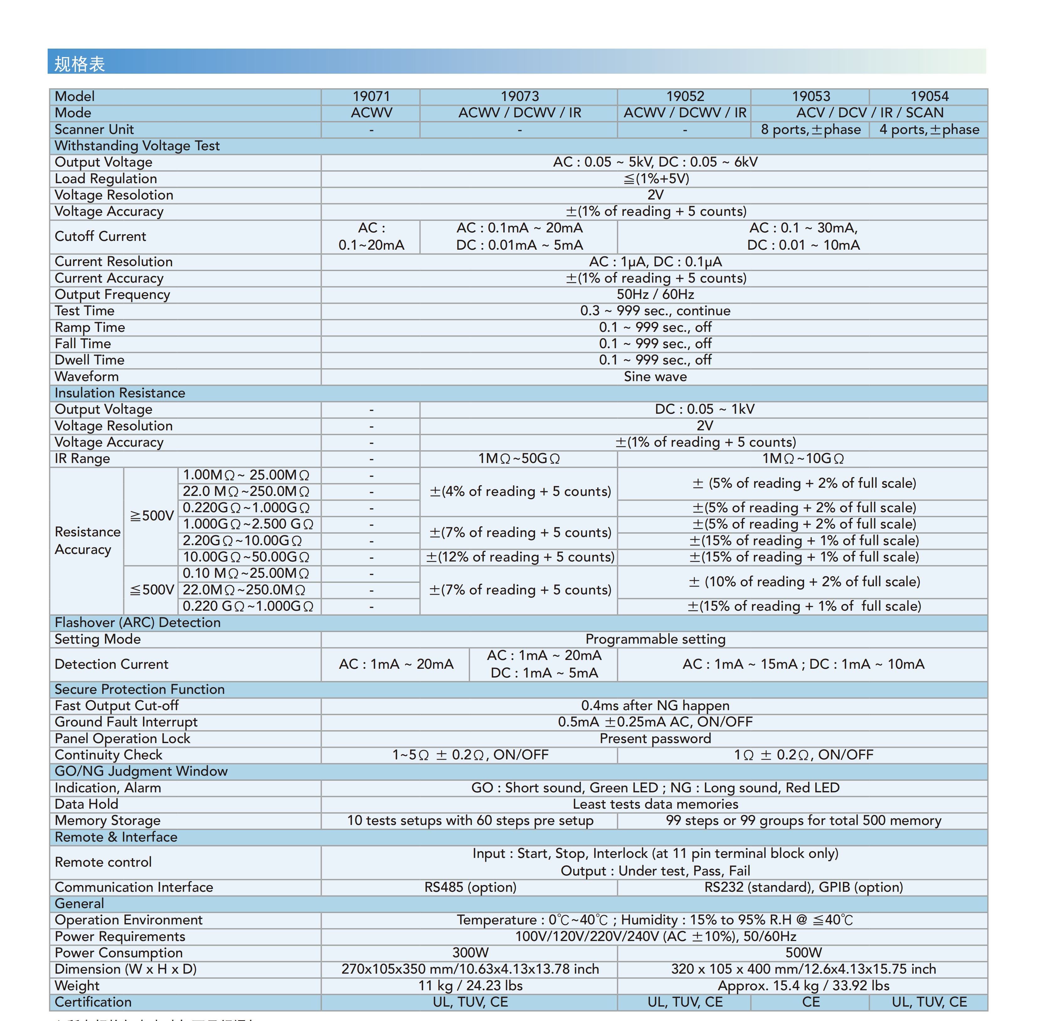 名  称:耐压测试器MODEL19070&19050系列