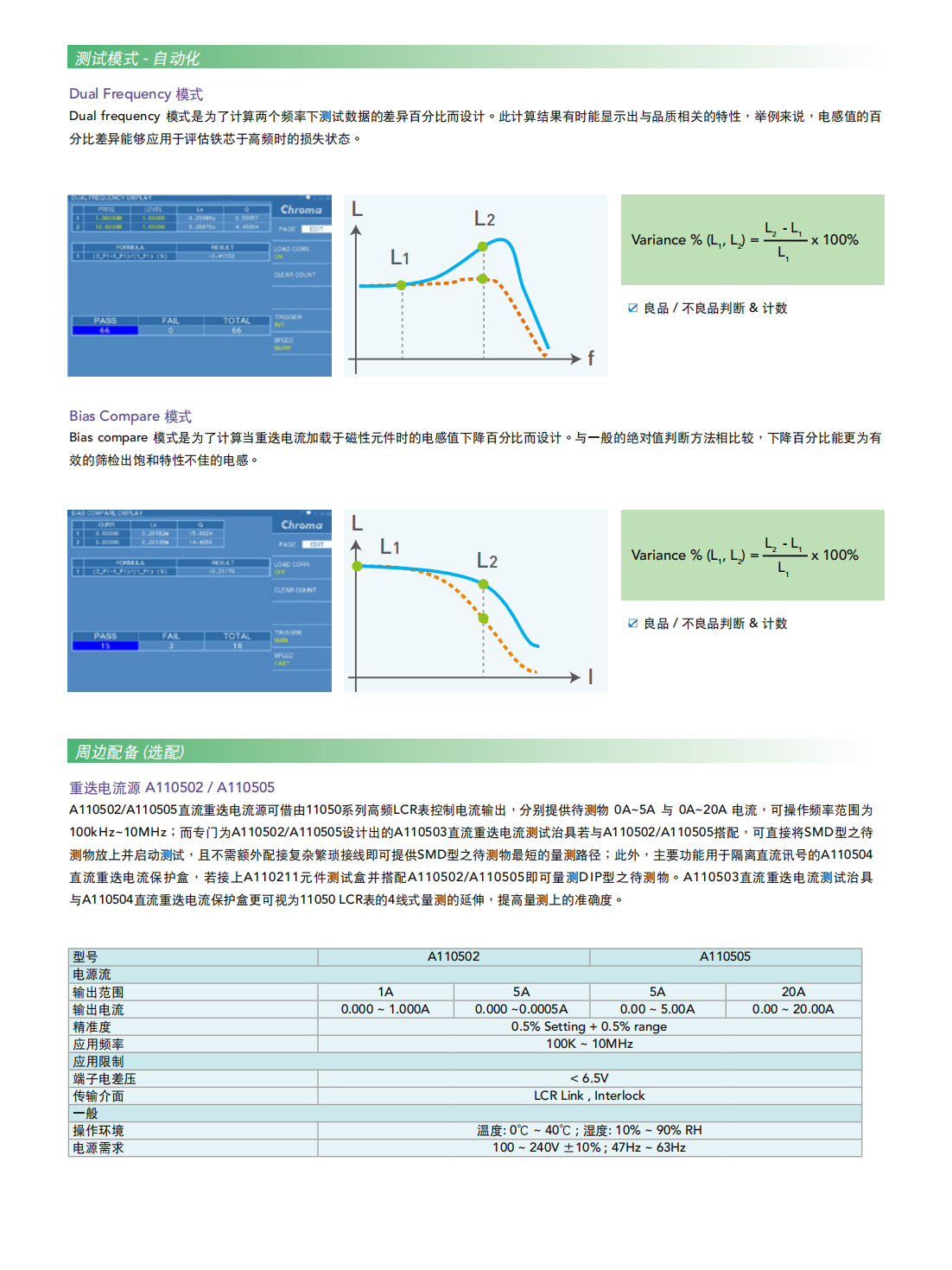 Chroma 11050系列高频LCR表为一提供被动元件量测评估解决方案,兼具精准与快速两大特色的精密测试仪器。量测项目涵盖电感、电容、电阻、品质因素、损耗因素等各种被动元件测试所需的主、副参数。
